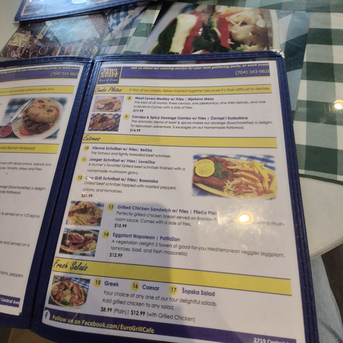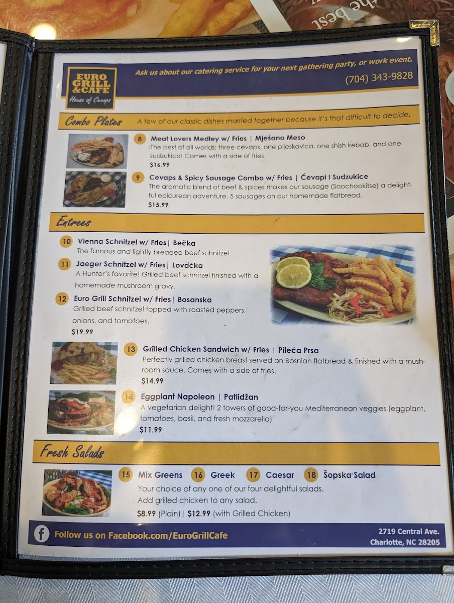 Bosanska grilled beef schnitzel topped with roasted peppers, onions, & tomatoes.